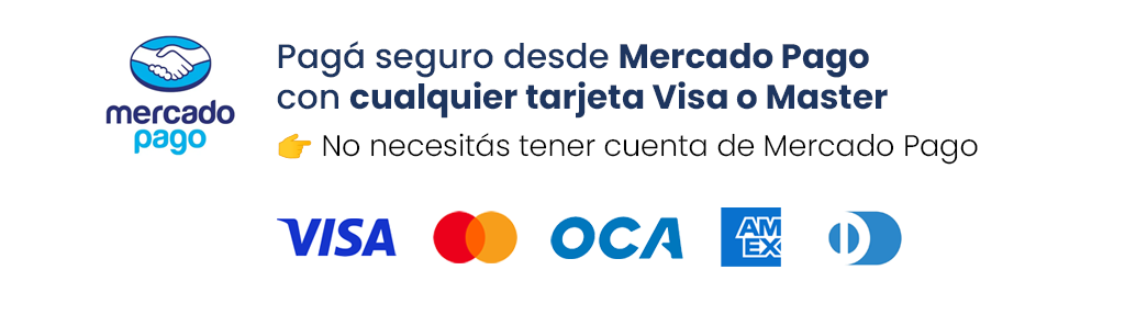 Podés pagar con cualquier tarjeta mediante Mercado Pago, incluso si no tenés una cuenta en Mercado Pago.